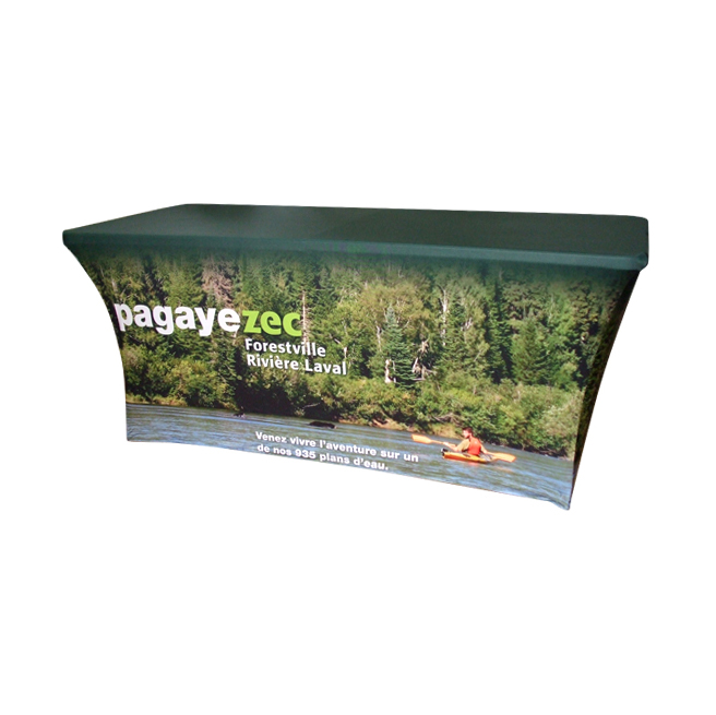 Nous avons des imprimantes grand format permettant d’imprimer sur papier pour ensuite être transféré par sublimation sur le textile. Ce procédé unique permet l’impression sur tissu de façon permanente. L'entreprise fabrique plus de 3000 kiosques annuellement qui sont expédiés à la grandeur du pays.