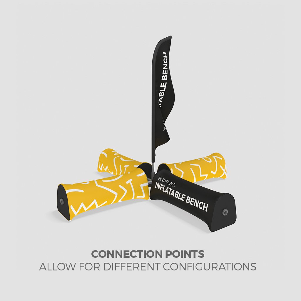 Il est possible de joindre 4 bancs et d'y ajouter un beach-flag.