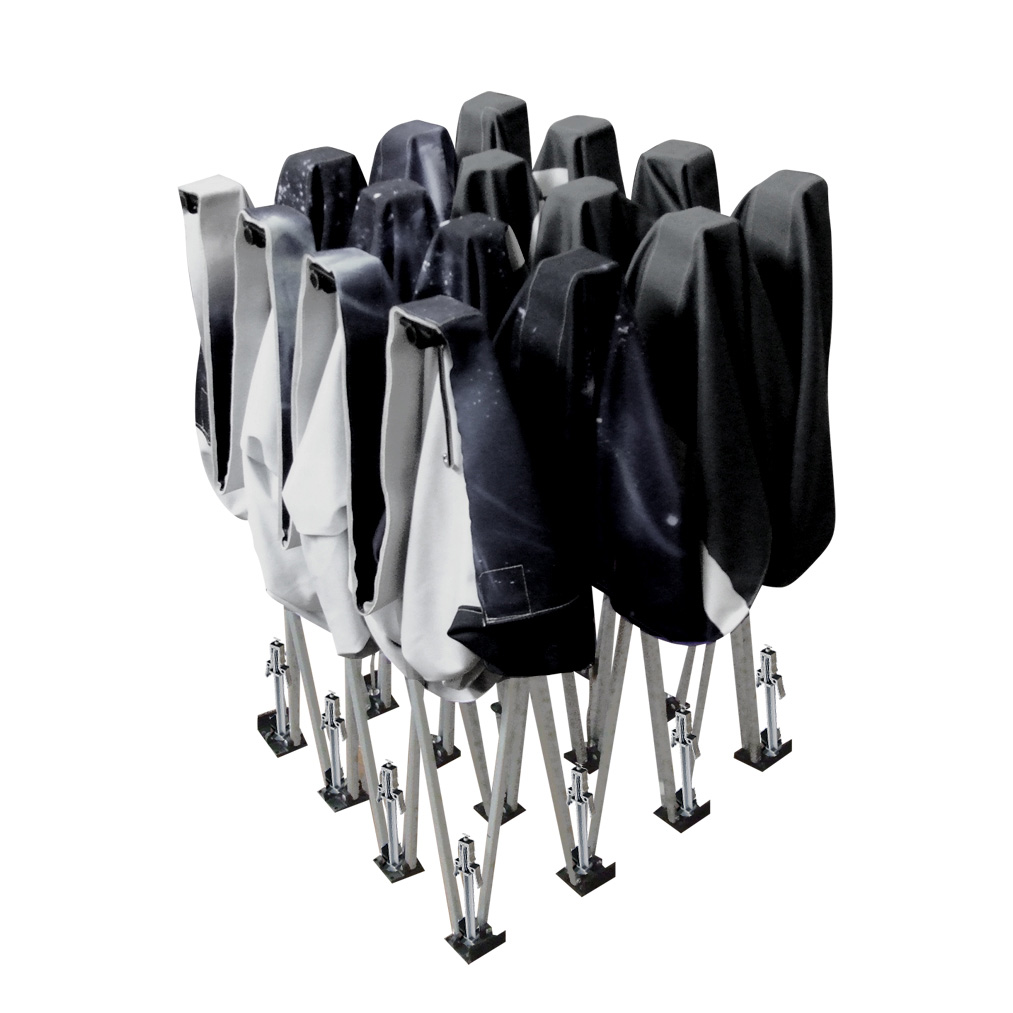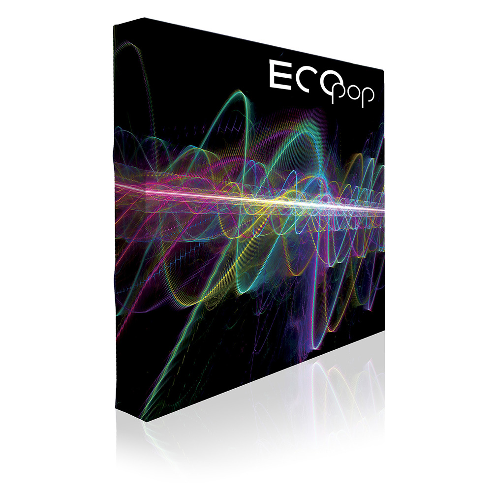 Structure de style pop-up. Le montage du kiosque EcoPop se fait en quelques secondes. Le visuel est imprimé sur un tissu de qualité et demeure sur la structure lors de l’entreposage, ce qui rend le montage ultra rapide.